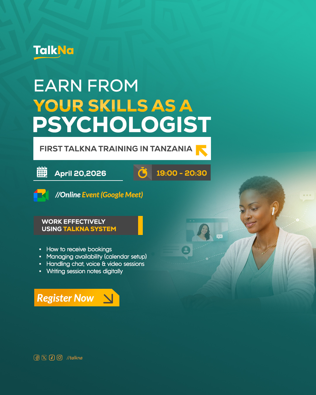 TalkNa is launching its first-ever training in Tanzania for psychologists and mental health professionals. This exclusive session is designed to he...